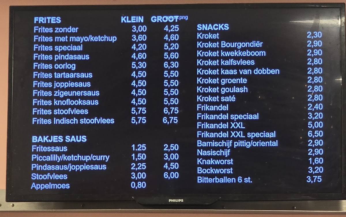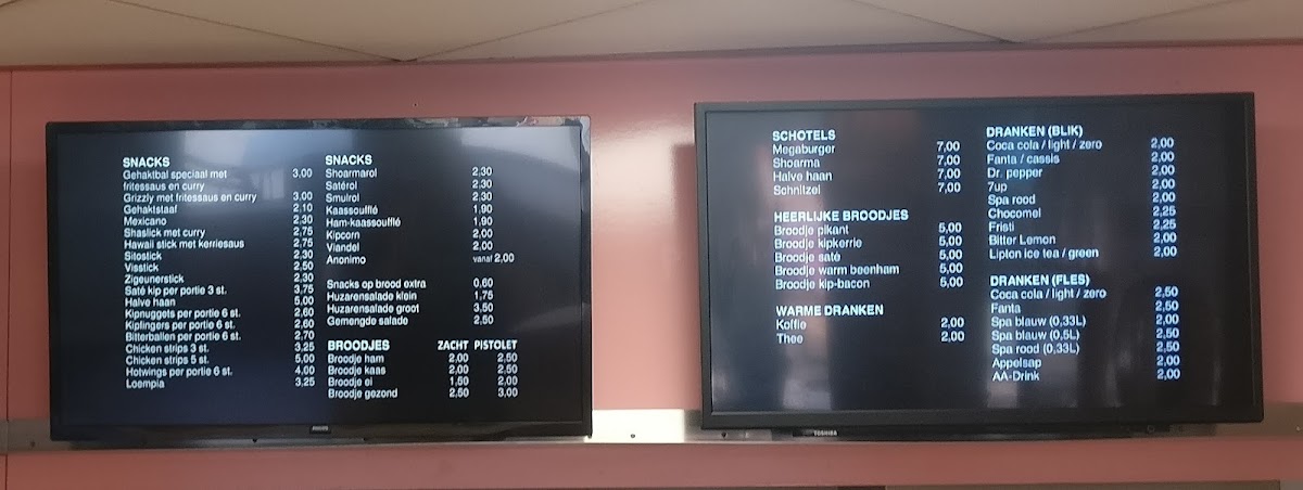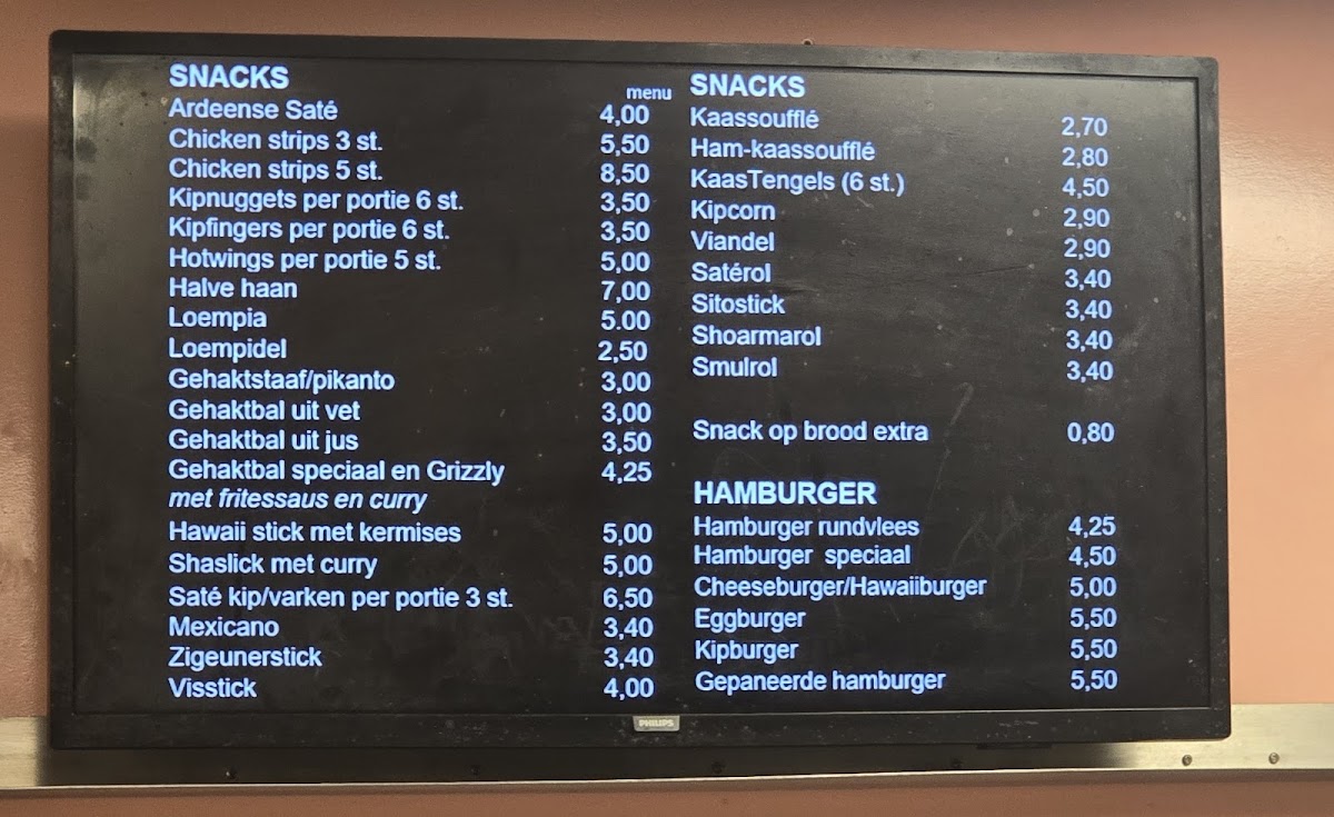 Snack Bar van der Heijden Menu